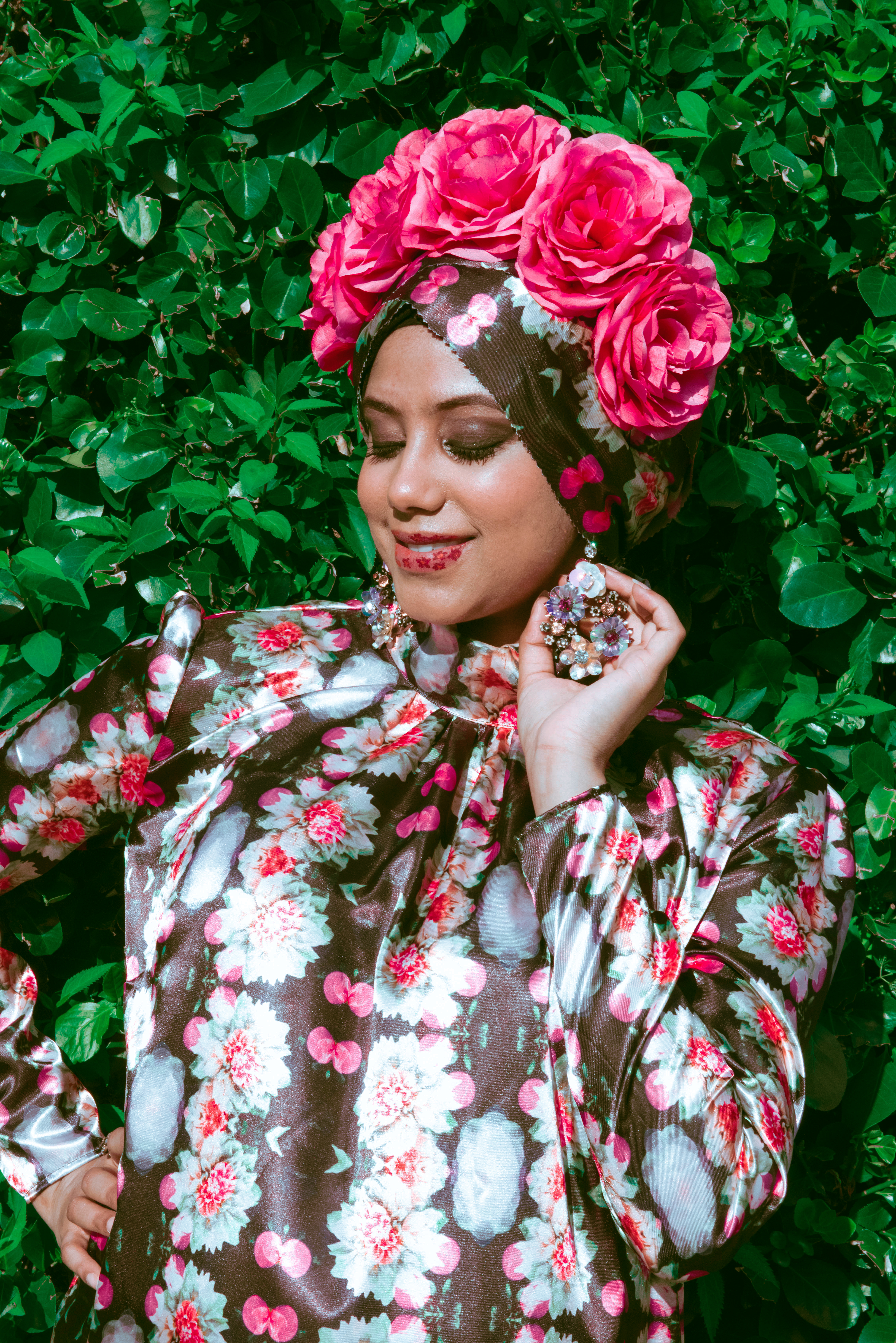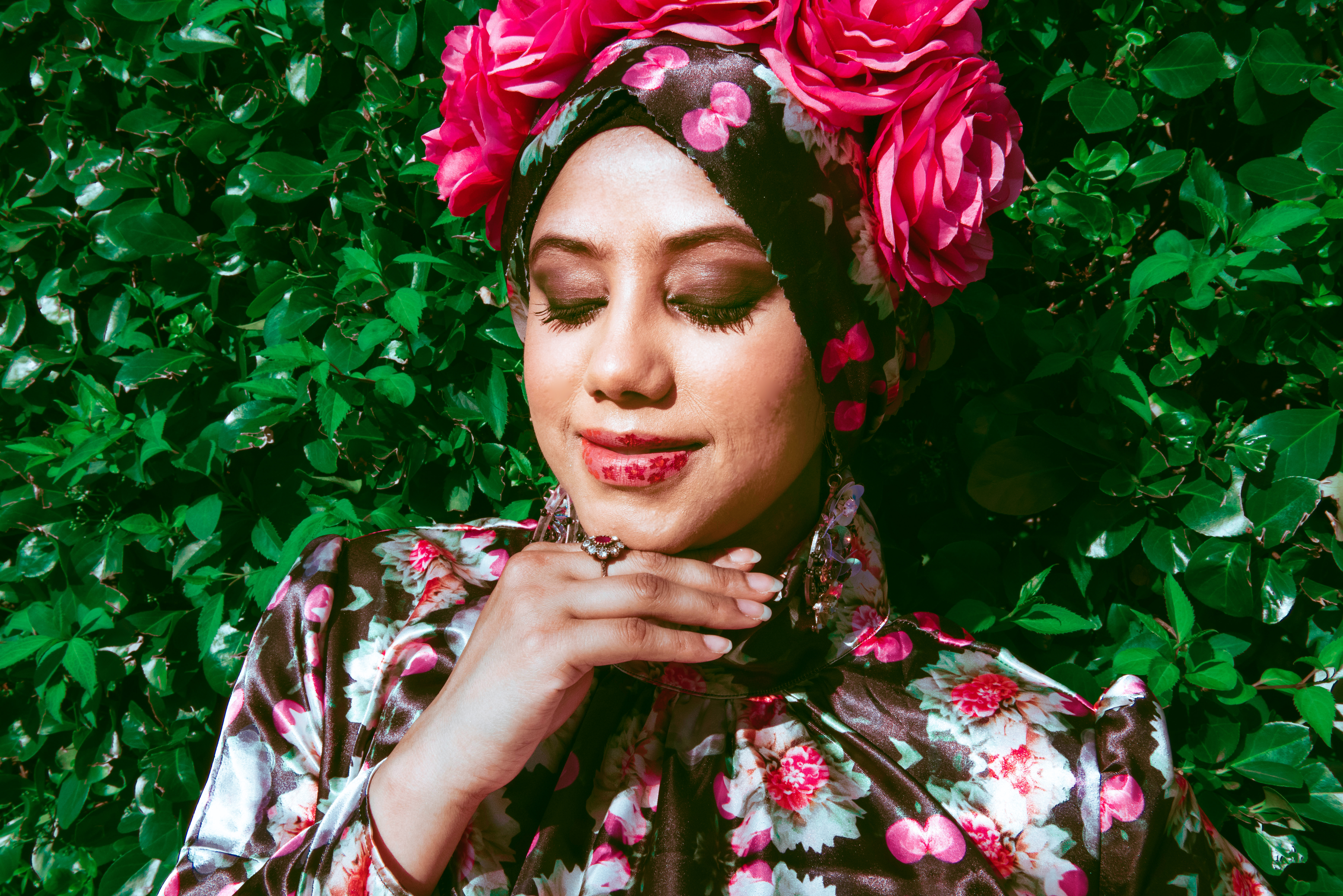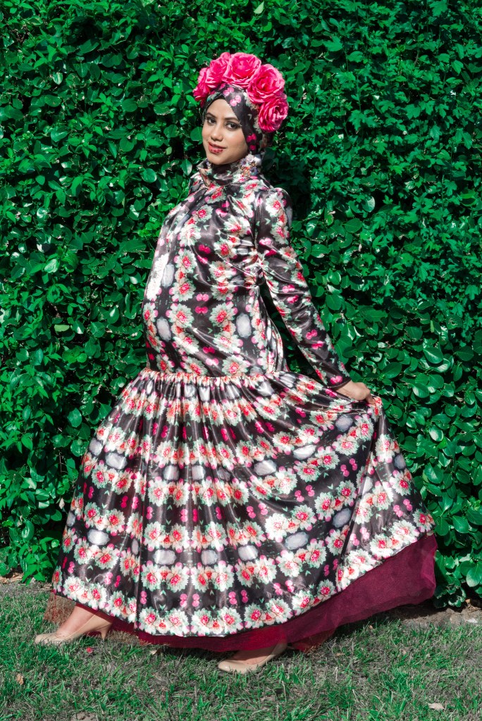 For a while I had an idea to make a photo by my cousin Raqeebah Zaman Photography into a fabric print. A fabric print from my cousin’s photo was the start of this beautiful project. There was no question that a floral print was going to be it. I had already chosen the photo and print design when I happened to watch Salma Hayek’s Frida movie.