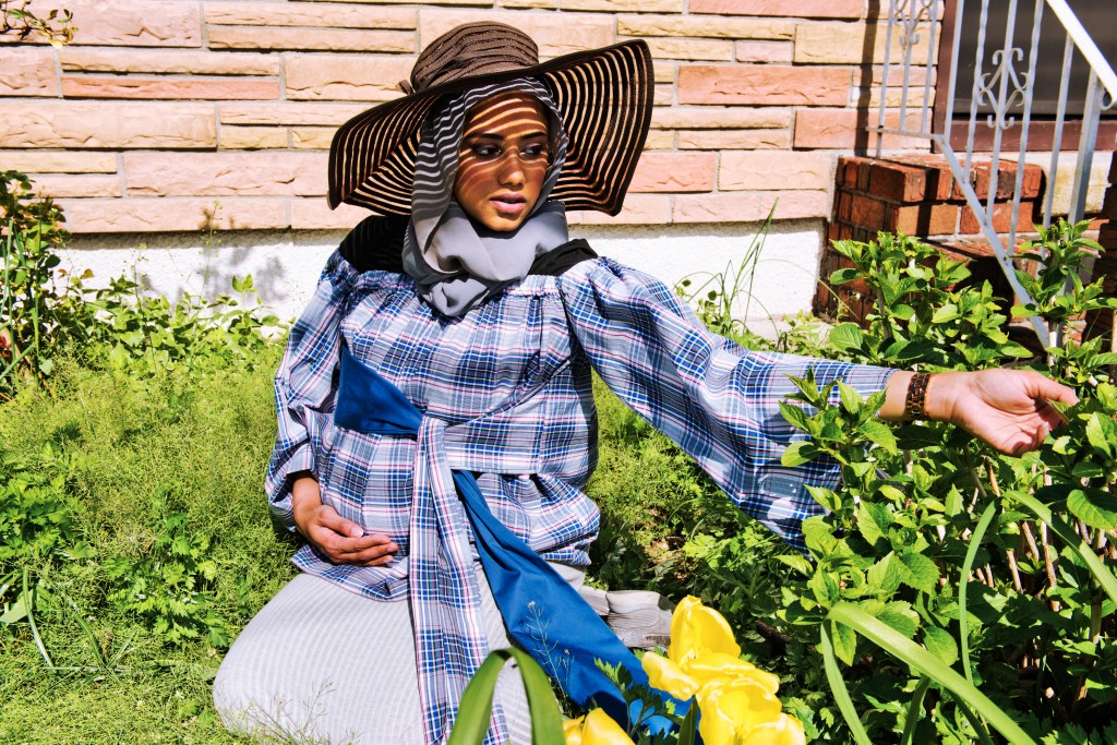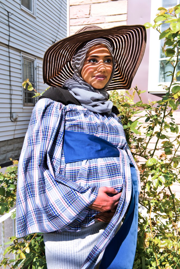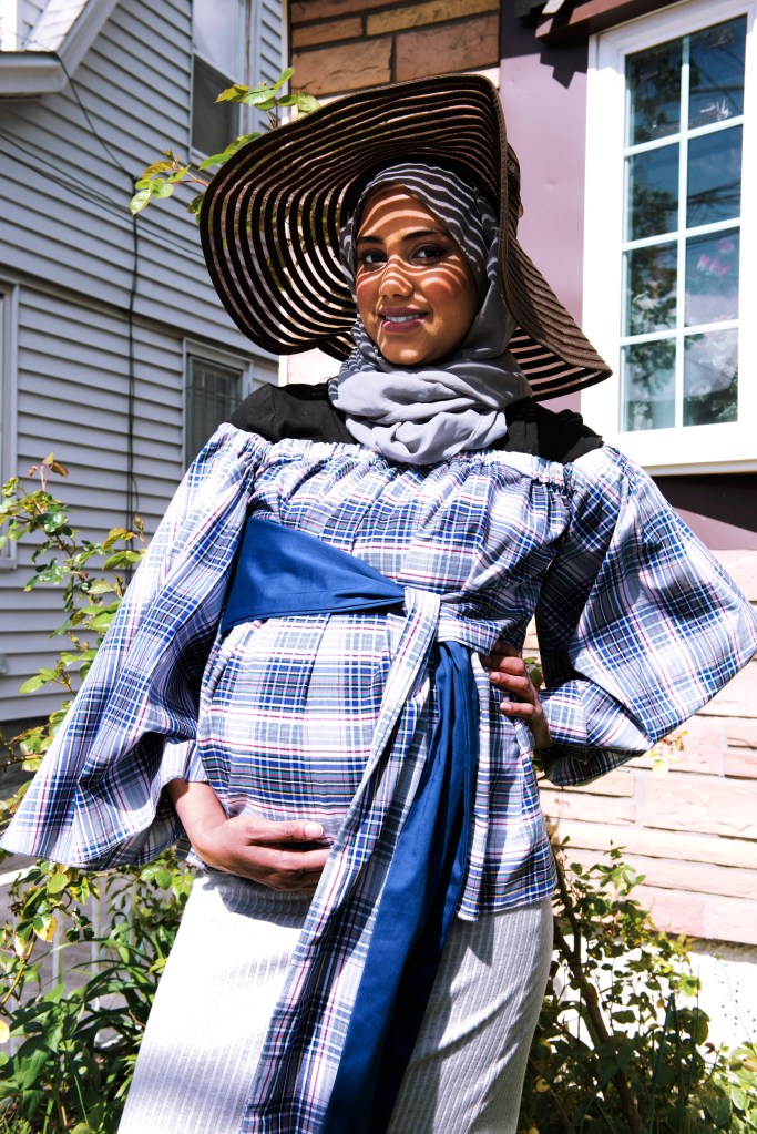 This plaid cotton fabric is sample yardage I picked up for my boys’ thobe collection (www.yftbyammaraza.com). I didn’t end up using this for the boys’ collection so it sat in my fabric storage for a while. The blue cotton sateen is also leftover fabric from my boys’ collection!