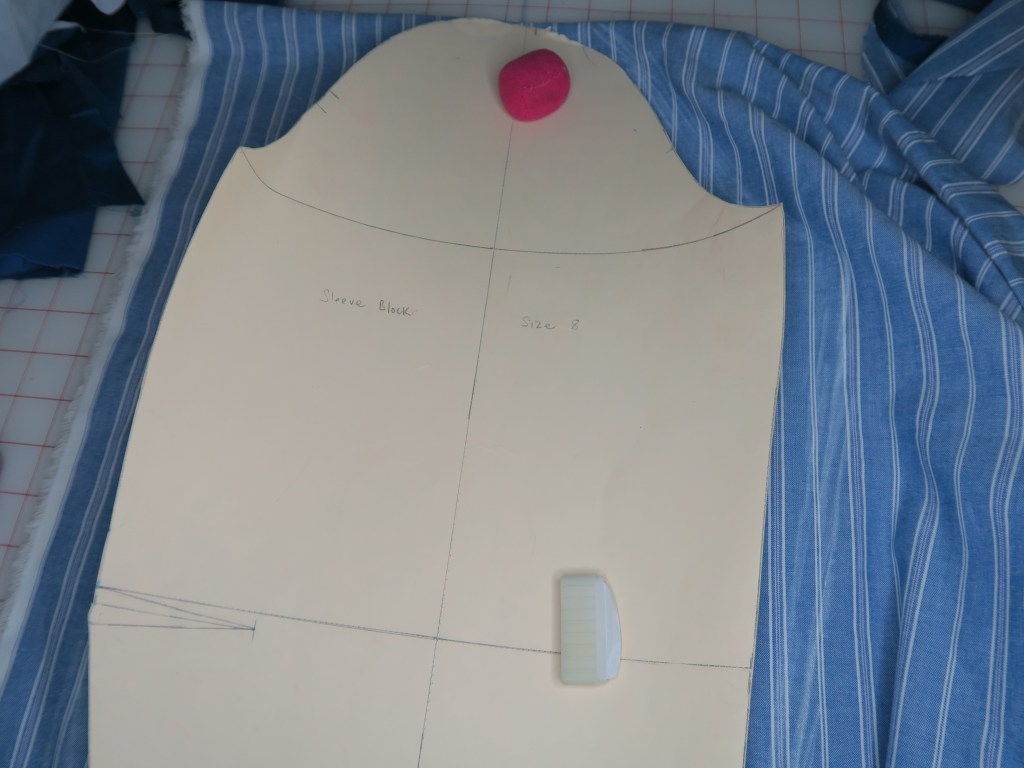 For the sleeves, I started with my sleeve block. As with all quick self-drafted projects, I laid my block on the fabric and eyeballed how I wanted to cut the sleeves.