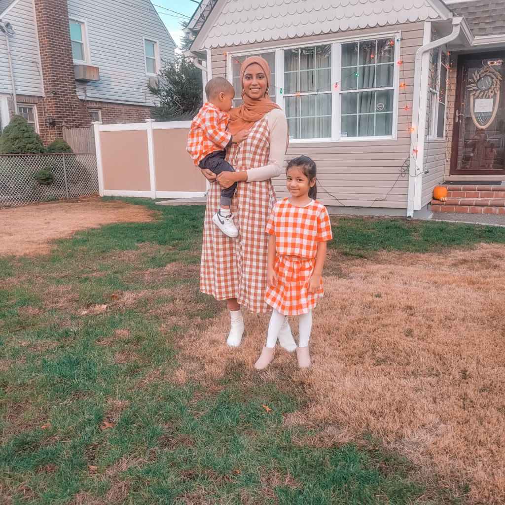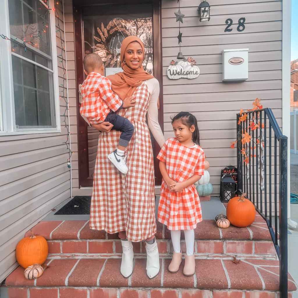 My son’s tunic shirt is from my boys’ thobe shop, www.yftthobeshop.com. In September, I finalized infant sizing with my pattern maker. I had to make a cute seasonal shirt! I don’t have tunic shirts for sale yet; this was a fun seasonal style to make and maybe there will be more in the future! The orange gingham fabric is from fabricwholesaledirect.com and I highly recommend if you are small business. The prices and shipping times are excellent!