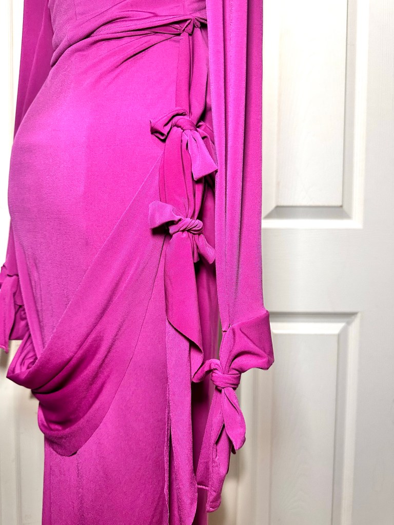 I went through SO many design ideas for a Barbie theme dress! When I saw Kim Kardashian’s bow dress, I fell in love. I love everything about the dress: the sleeves, the cut-outs, the mermaid skirt shape, the BOWS, and especially the fabric!